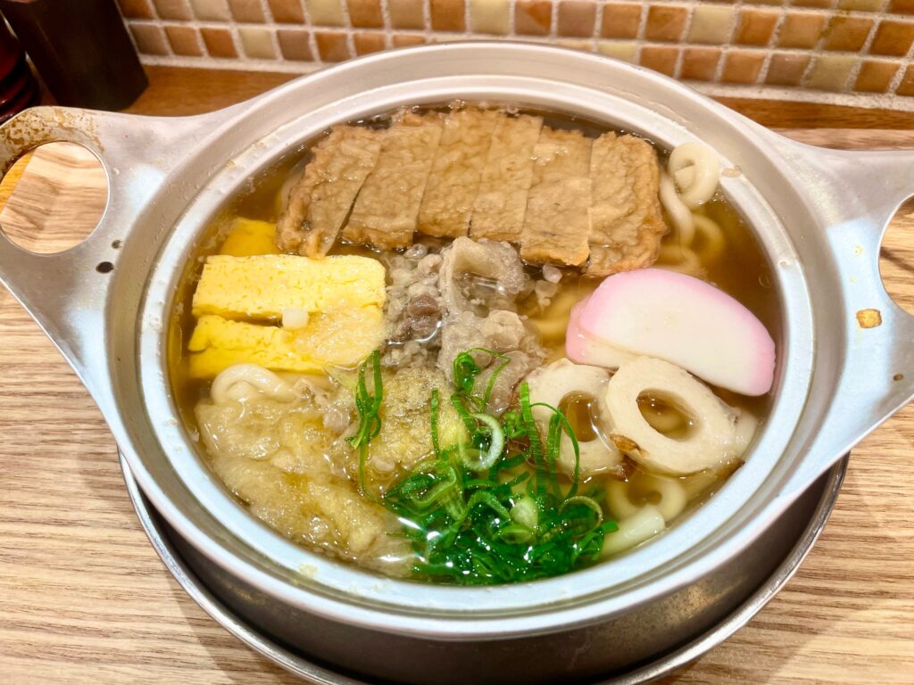お昼は軽めがいいと思い直して「鍋焼きうどん」