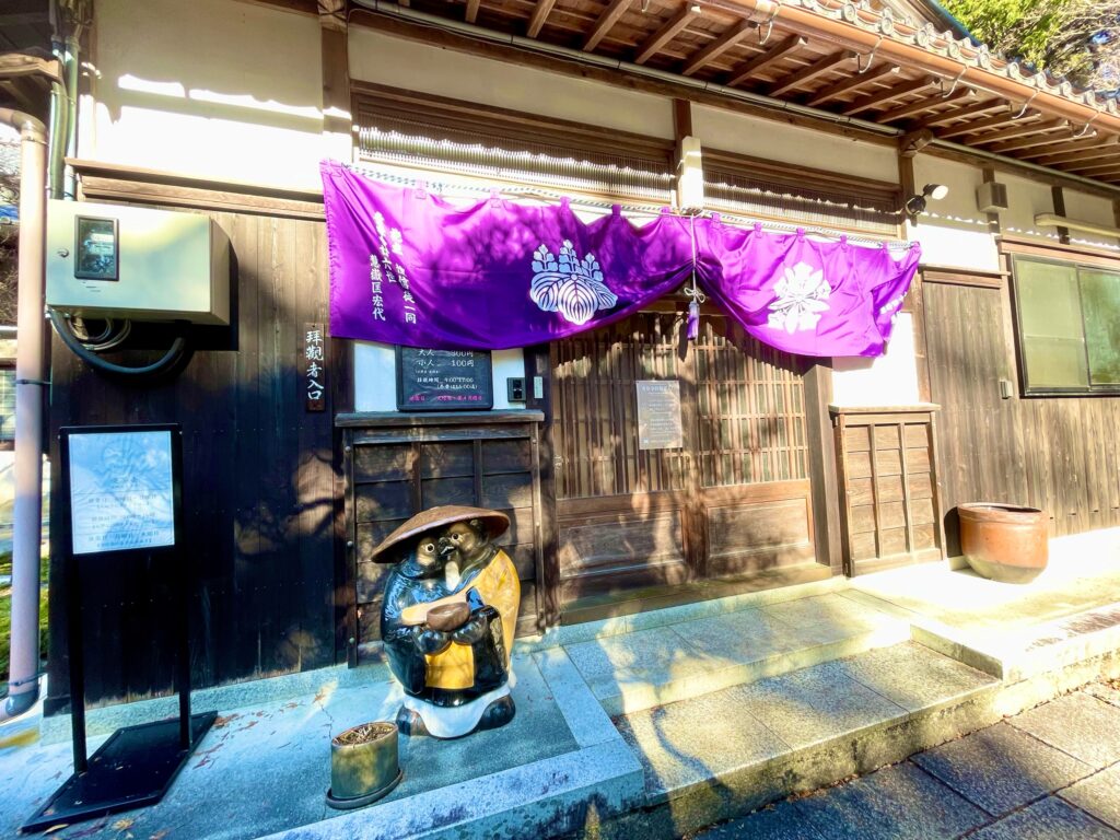 入口の信楽焼のたぬきがかわいい